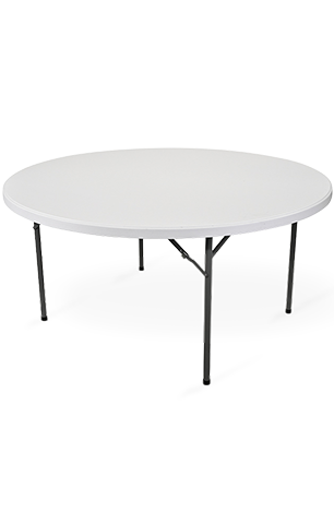 This circular folding table is highly rated for a variety of uses, such as church dinners, community events, break rooms, seminars, display areas, youth ministries, offices, and more.